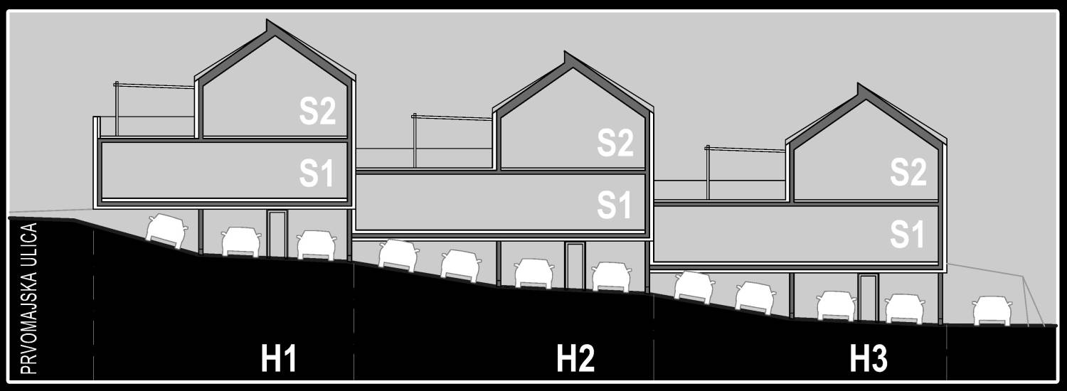 Sosesko predstavljajo tri novozgrajene hiše, vsaka z dvema različnima tipoma stanovanj. Povezuje jih skupna dovozna cesta do kletnih etaž, kjer bodo odprte garaže in zunanja parkirna mesta. Pritlična stanovanja imajo prostorne terase z veliko zelene površine, stanovanja v nadstropju pa veliko teraso, ki predstavlja dodatno bivanjsko kvaliteto. Stanovanja odlikuje sončna lega s štiristrano osvetlitvijo, kar zagotavlja svetle bivalne prostore. Stanovanjske enote so skrbno načrtovane in zgrajene z izbranimi materiali, upoštevaje visoke zahteve energijske učinkovitosti.